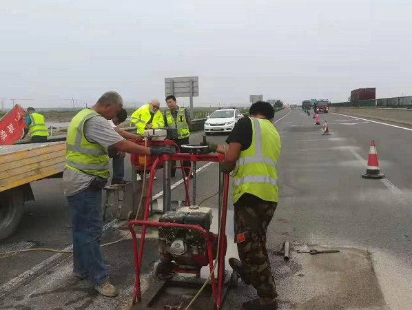 沿海处养护中心管辖内主线路段,由于长期荷载作用,时常出现脱空或是裂缝等现象,这样大大损害了路面。为了有效预防道路发生脱空以及裂缝等情况,近日,我处养护中心通过细化养护预案,带领养护队伍,对路面损害部位进行了整修。此次整修,采用新型路基注浆加固新型路面养护技术进行。整个施工过程免除了道路开挖的工序,类似于做微创手术一样在路面打些孔,灌入地聚合物,待其渗入地基各缝隙后凝结,施工几小时后便可开放,从而减少了交通拥堵。相比于传统的开挖方式,此项技术既避免了垃圾的产生及外运,又不会对其他道路的通行能力产生影响,达到了快速高效、性价比高、节省经济成本的效果。
