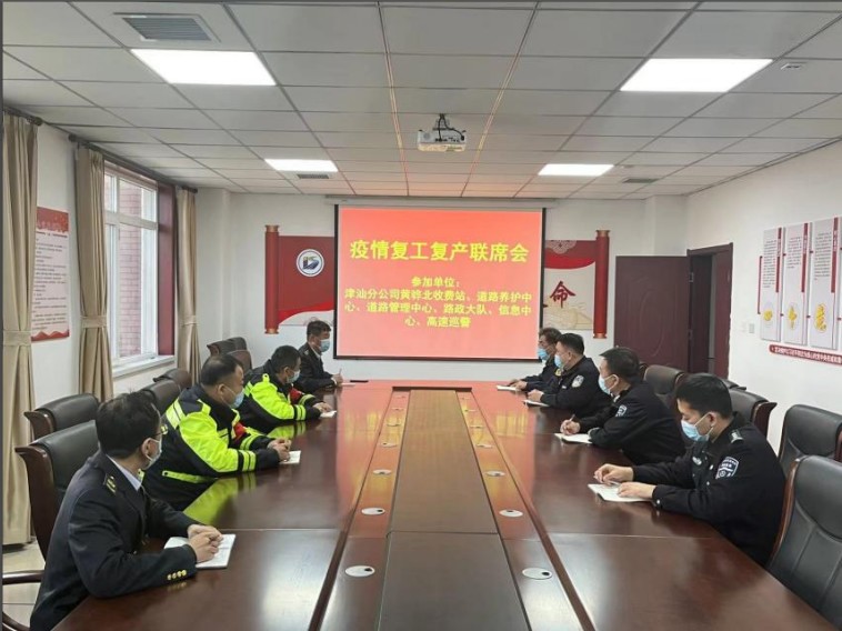 3月23日下午,津汕分公司黄骅北收费站、道路养护中心、监控稽查稽核中心与道路管理分公司津汕大队、高速巡警黄骅大队联合召开复工复产联席会议,共同研究分析疫情期间高速公路通行情况,全力保障复工复产顺利进行。