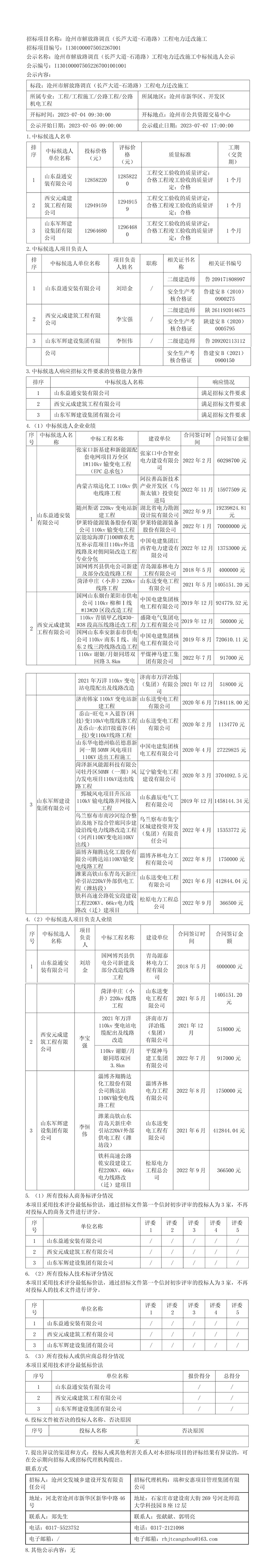 沧州市解放路调直(长芦大道-石港路)工程电力迁改施工中标候选人公示