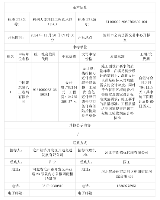 科创大厦项目工程总承包(EPC)中标结果公示