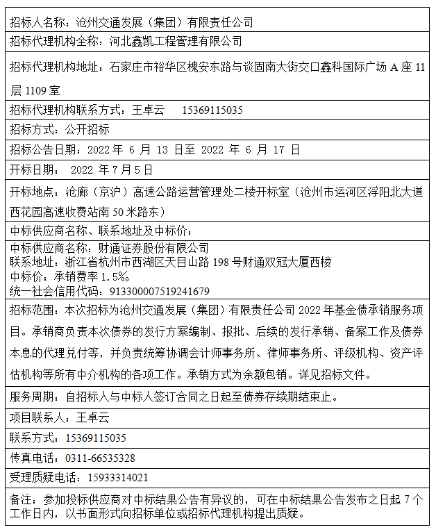 sunbet申愽官网2022年基金债承销服务项目 中标结果公告