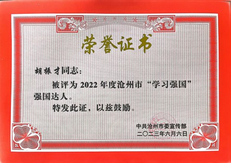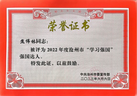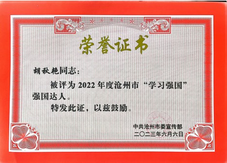 近日,在市委宣传部开展的2022年度沧州市“学习强国”强国达人评选活动中,实业公司焦伟林、胡秋艳和公交公司胡振才荣获“学习强国”学习达人,津汕分公司张静荣获“学习强国”供稿工作先进个人。