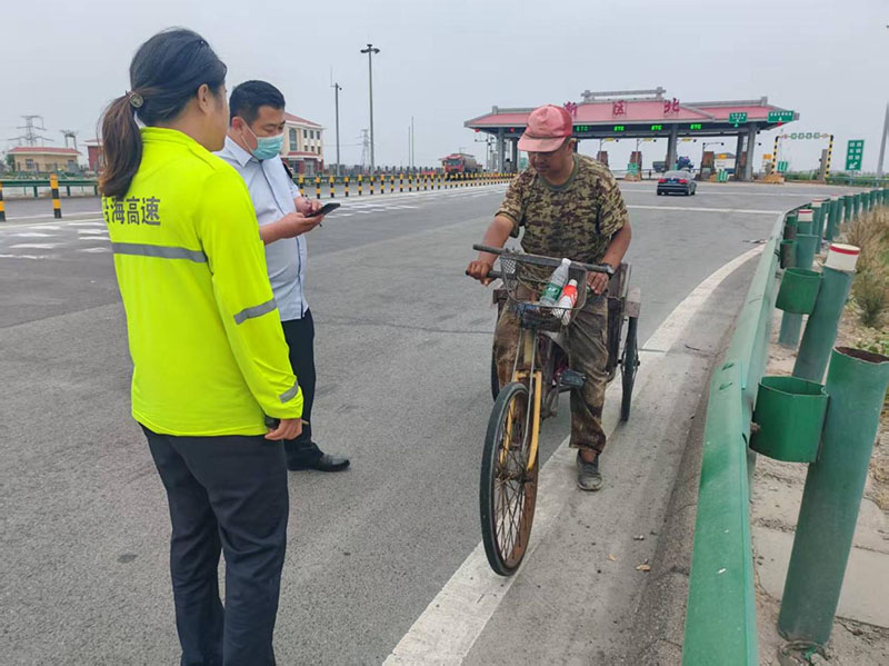 5月31日,新区北收费站四中队当班期间,中队长王如在车道例行巡逻时,一个危险的场景映入眼帘:一名神情恍惚的男子骑着三轮车,竟在出口车道上逆向行驶!高速路上,车辆川流不息,引擎的轰鸣声呼啸而过,男子的处境岌岌可危,稍有不慎就可能引发事故。王如心头一紧,迅速通知值班站长魏宏升,并毫不犹豫地冲上前去进行劝返。然而,劝返过程远比想象中艰难。由于男子神志不清,根本听不进志愿者们的耐心劝导,甚至多次试图再次闯入高速行车道,情况万分危急。但志愿者们没有丝毫退缩,他们分工协作,一边用温和的语言安抚男子情绪,一边小心翼翼地阻挡其危险行为。经过漫长的努力,男子终于渐渐平静下来,放弃了继续冒险的念头。在确保男子安全后,志愿者们将他带到安全区域休息,贴心地递上饮用水,轻声细语地安抚他紧张的情绪。通过耐心沟通,志愿者们从男子断断续续的话语中捕捉到手机号码这一关键信息。随后,他们迅速展开联系,成功与男子心急如焚的家属取得了联系。得知消息后,家属一刻也不敢耽搁,立即动身赶往现场。几个小时后,家属匆匆赶到,看到安然无恙的亲人,激动之情溢于言表。他们紧紧握住志愿者们的手,泪水在眼眶中打转,不停地说着感谢的话语。原来,这名男子患有精神疾病,当天趁家人不注意偷偷外出,不知不觉竟误上了高速。家属心有余悸地表示,如果不是志愿者们及时发现并全力救助,后果简直不堪设想。